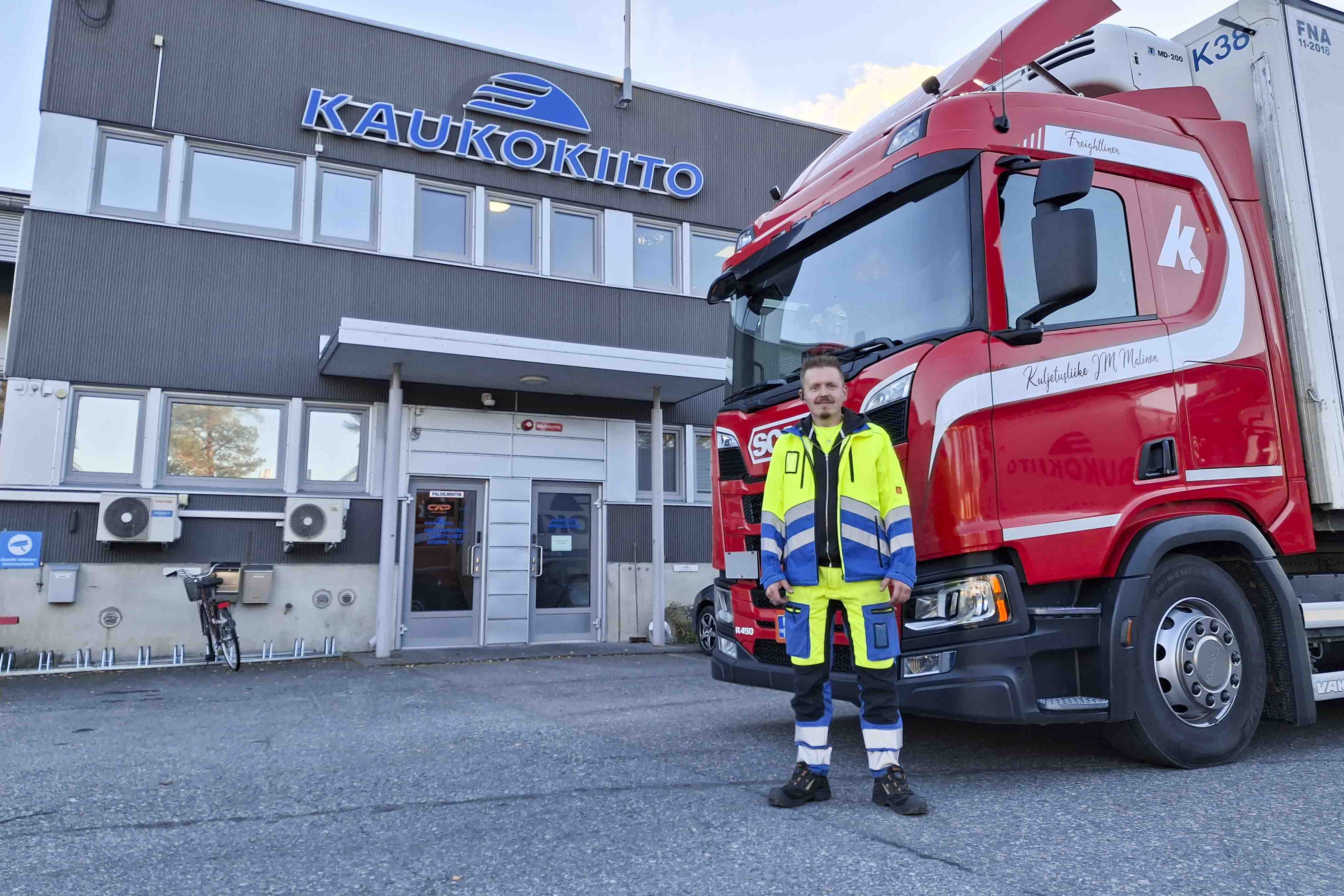 Tuore kuljetusyrittäjä Juha-Matti Malinen, 39, ajaa Suomen itäisintä jakeluliikennettä Kaukokiidon alihankkijana. Hän toimi aiemmin palkollisena kuljettajana Kaukokiidossa ja aloitti yrittäjäpolun kautta kuljetusyrittäjänä syyskuussa. Vastaavia tarinoita on Kaukokiito-ketjussa useita.