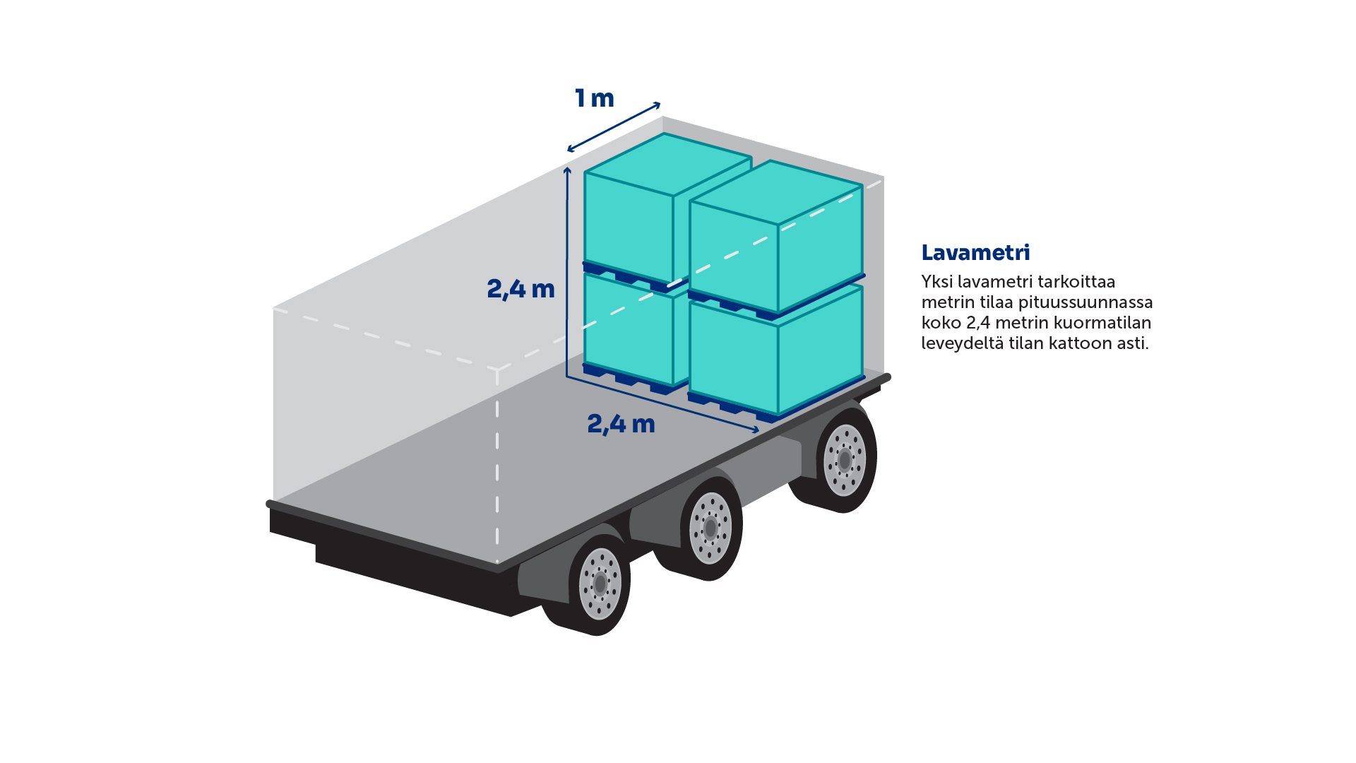 Lavametri on yksinkertaisesti yksi metrin mittainen pätkä kuormatilasta. Laskennallisena lastausleveytenä käytetään 2,4m, joten yksi lavametri on 2,4m². Lavametrit lasketaan jakamalla lähetyksen pohjan pinta-ala yhdellä lavametrillä (2,4m²).